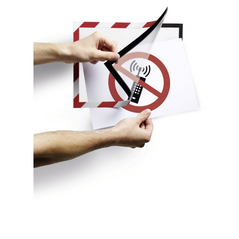 Самоклеящаяся двухцветная информационная рамка DURAFRAME® SECURITY - идеальное решение для размещения знаков безопасности в форматее А4 на твердых поверхностях.