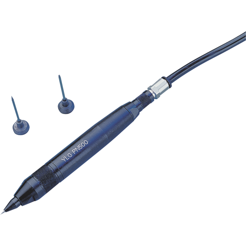 Пневматический гравер промышленного класса делает 500 ударов в секунду. Идеально подходит для использования на сборочных конвейерах. Пневматический гравер оставляет постоянную надпись на большинстве поверхностей, которые более долговечны, чем маркировка мелками или красками.