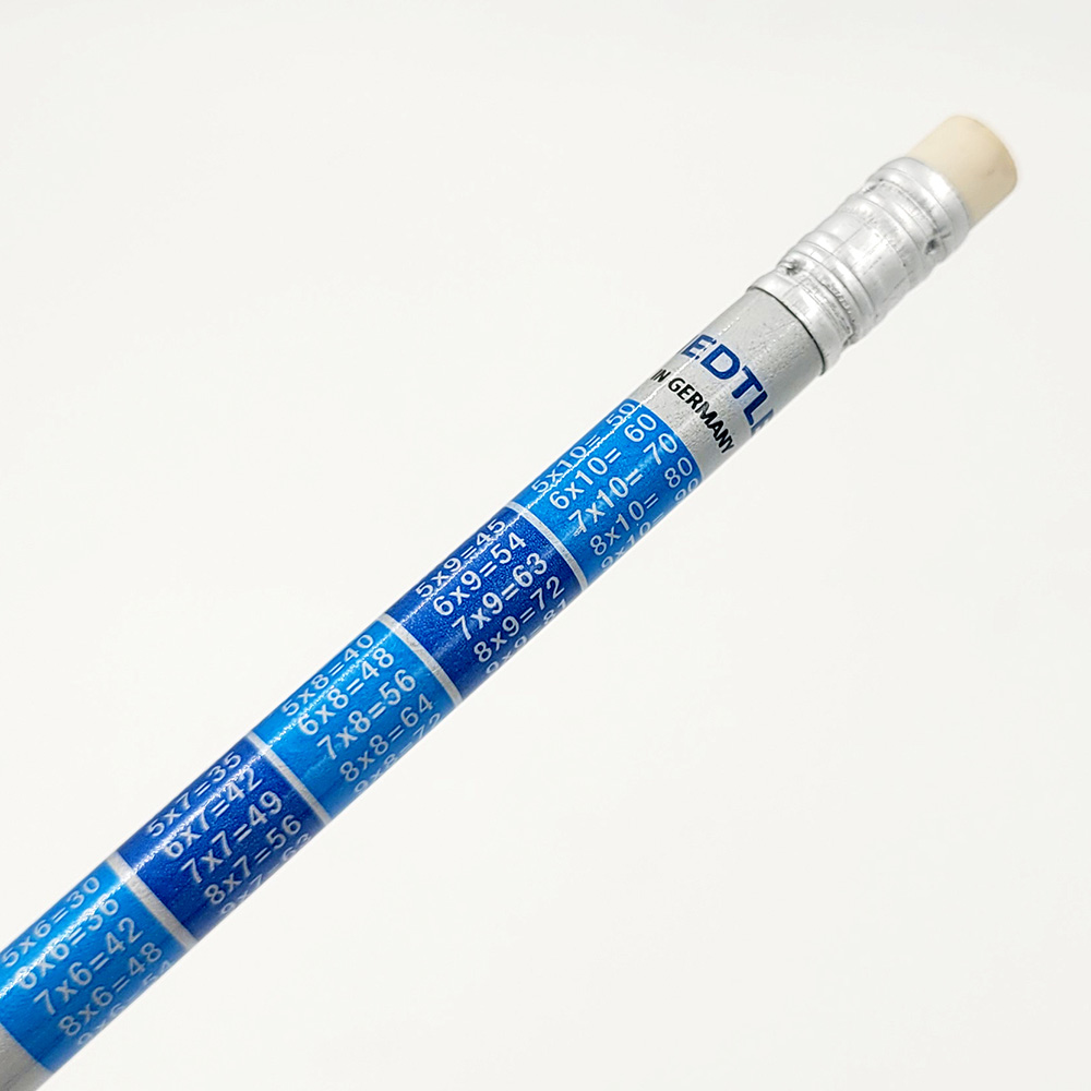 Корпус карандаша окрашен в серебристый цвет с нанесенной таблицей умножения.