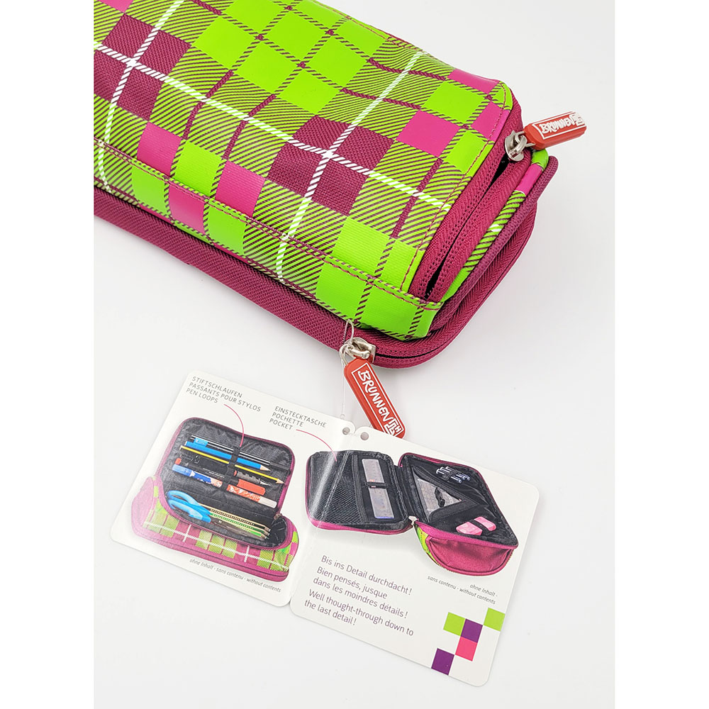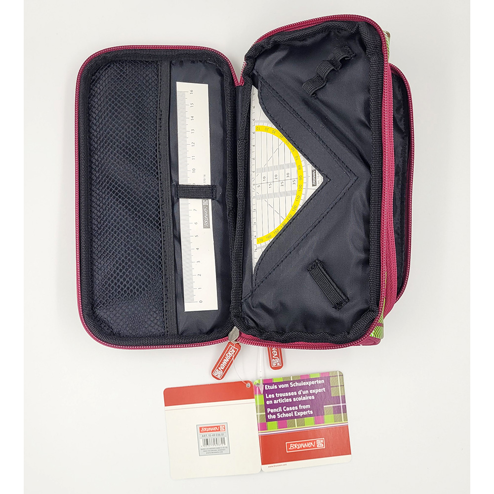 Компактный пенал Brunnen. Удобная застежка-липучка и яркие цвета добавляют пеналу индивидуальности. Внутри пенала удобные петли-крепления для 6 ручек, линеек и ластика.