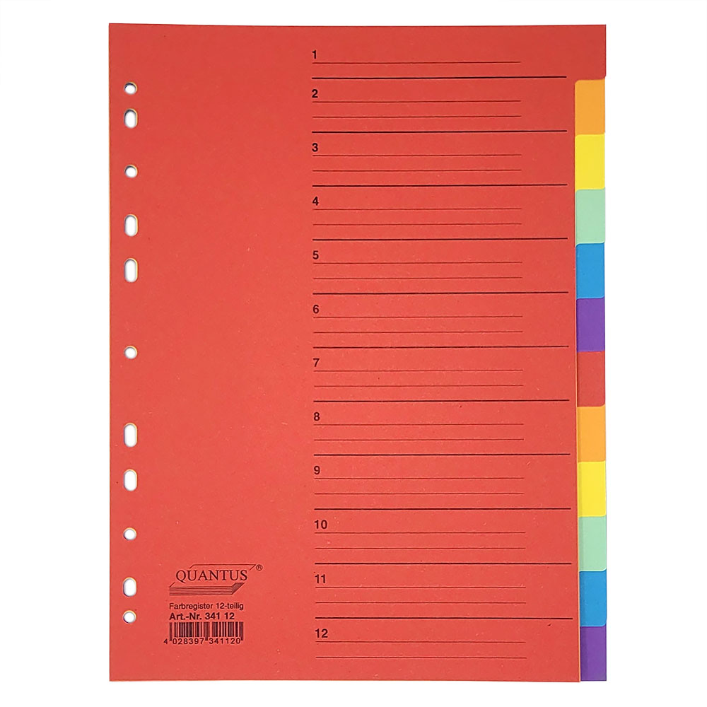 Разделители листов для папок-регистраторов и архивных папок от немецкого производителя Quantus из картона. Каждый лист разделителя имеет свой цвет, что облегчает поиск.
